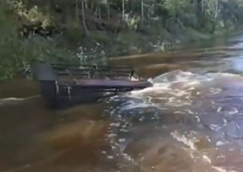 Вчера спасателям на лодках удалось обнаружить затонувший вездеход. Он находился в нескольких метрах от берега, а течением его отнесло примерно на 1,5 километра от переправы. Однако обследовать его на тот момент не представлялось возможным из-за сильного течения.